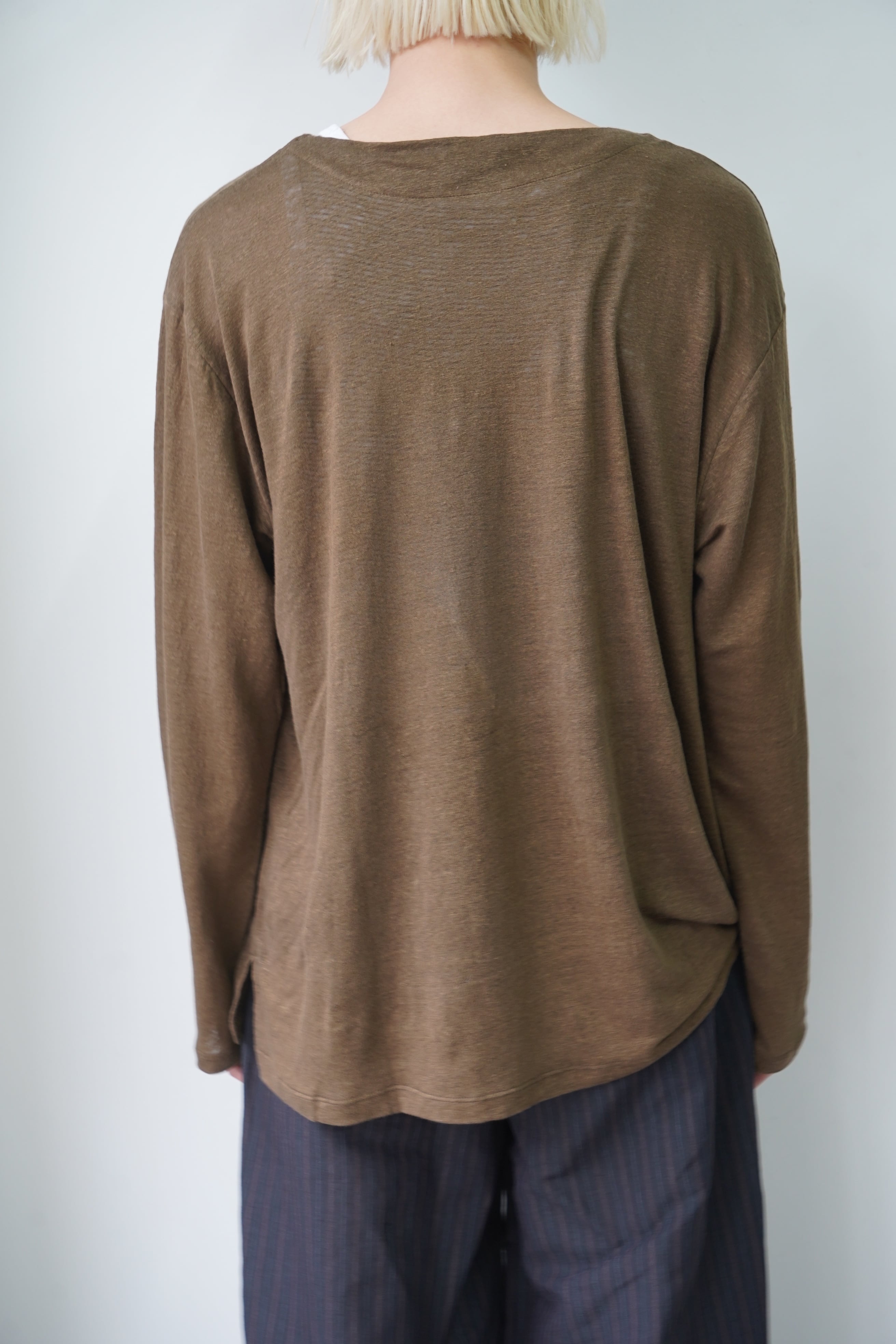 MAATEE&SONS / LINEN L/S BOAT TEE (KHAKI)